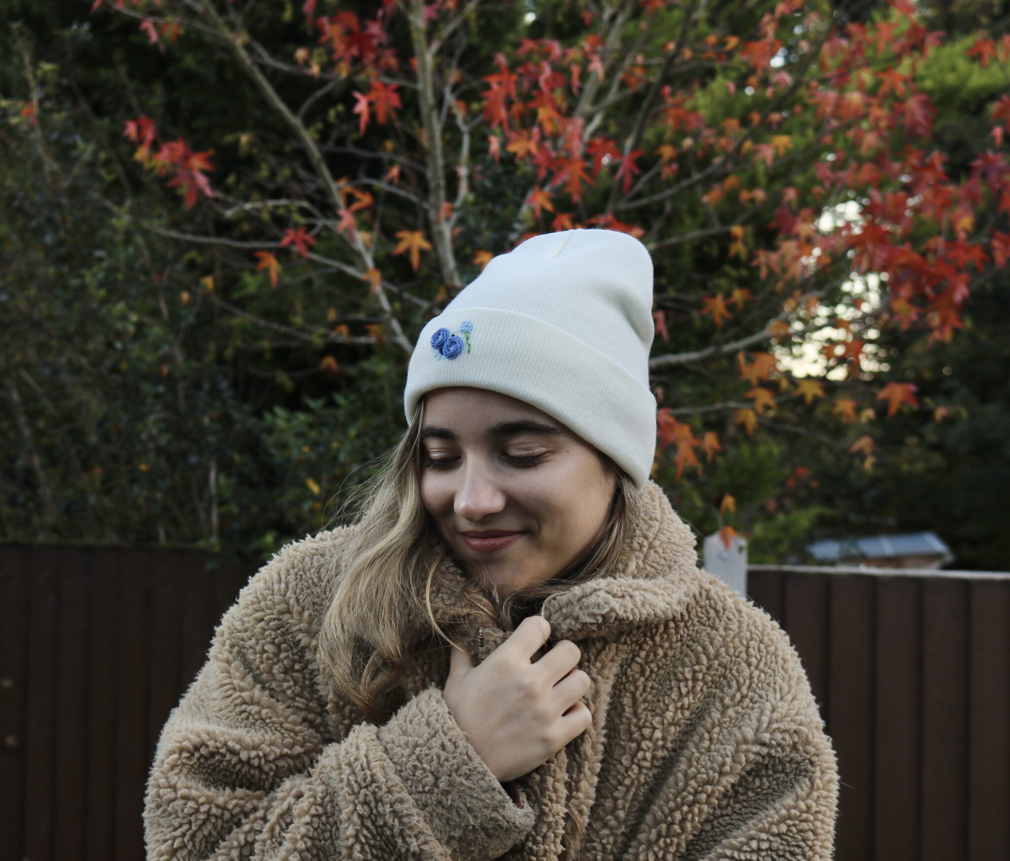 Cosy, soft, and stitched with care — this hand embroidered beanie is the perfect way to add a touch of charm to your cold-weather outfits.