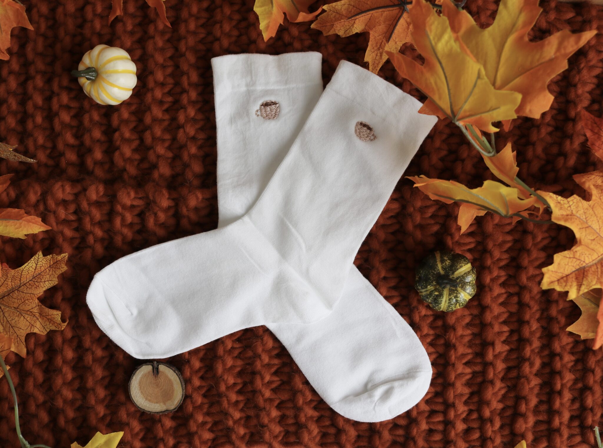 Step into autumn with these white cotton embroidered socks, featuring a hand-stitched mug of coffee, hot chocolate, or tea for the perfect cozy touch. Made from 90% cotton, they’re soft, breathable, and comfortable for everyday wear while adding a subtle nod to your favourite autumn rituals.