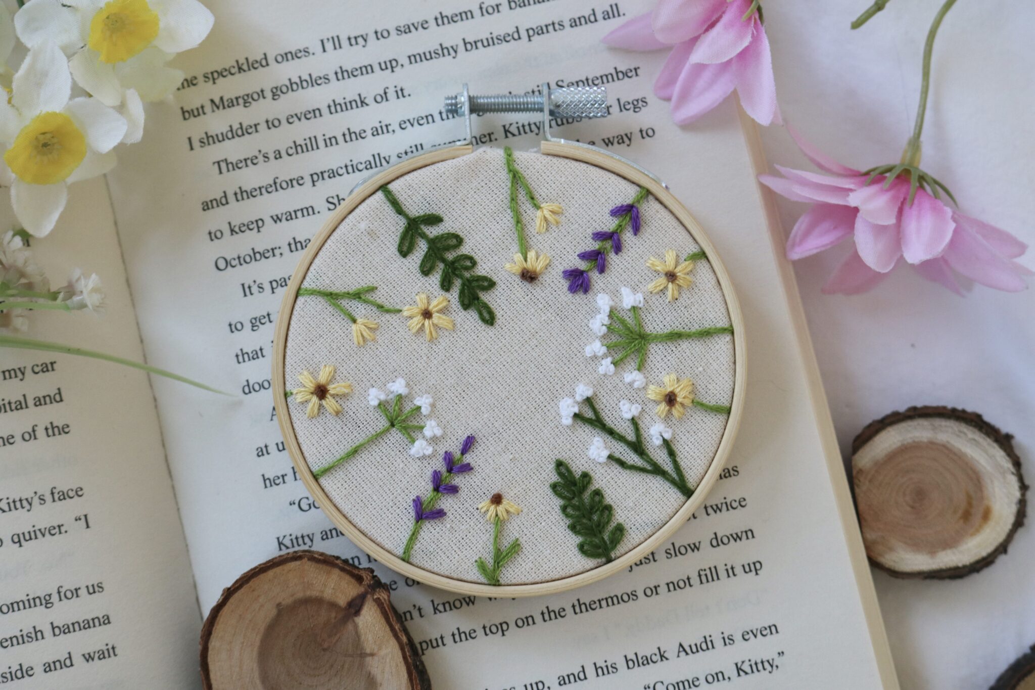 This miniature hoop is ideal for hanging as wall art, propping on a bookshelf, or including in a cottagecore-inspired gallery wall. It also makes a thoughtful handmade gift for nature lovers, flower enthusiasts, or fans of slow, sustainable living.